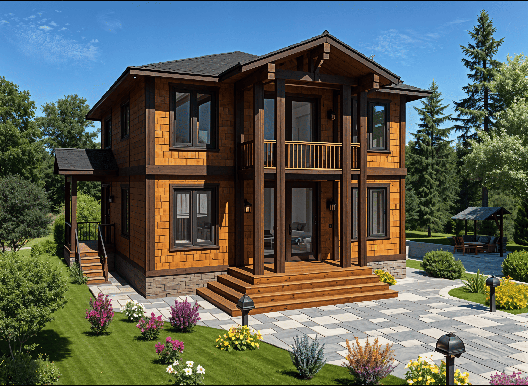 Дом XX29 из бруса сочетает в себе натуральную красоту древесины и функциональность. Площадь 168 м2 позволяет разместить все необходимые помещения для комфортного проживания. Брус обеспечивает естественную вентиляцию и поддерживает комфортный микроклимат внутри. Такое строение станет не только местом для жизни, но и украшением участка.