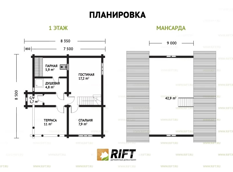 Пол | Черновой пол выполняется из доски 25 мм, чистовой пол выполняется из OSB-3 толщиной 18 мм | |
