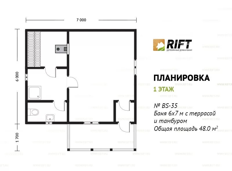 Каркасная баня BS35 — практичное решение для тех, кто хочет быстро и недорого построить баню на своем участке. Площадь 48 м² позволяет разместить просторную парную, моечную и комнату отдыха. Каркасная технология обеспечивает отличную теплоизоляцию и сокращает сроки строительства. Доступна установка свайно-винтового фундамента, утепление стен и крыши, а также проведение инженерных сетей.