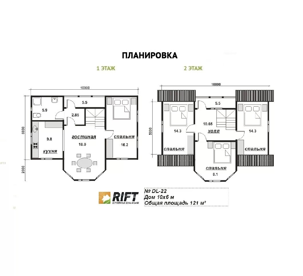 Пол | Черновой пол выполняется из доски 25 мм, чистовой пол выполняется из OSB-3 толщиной 18 мм | |
