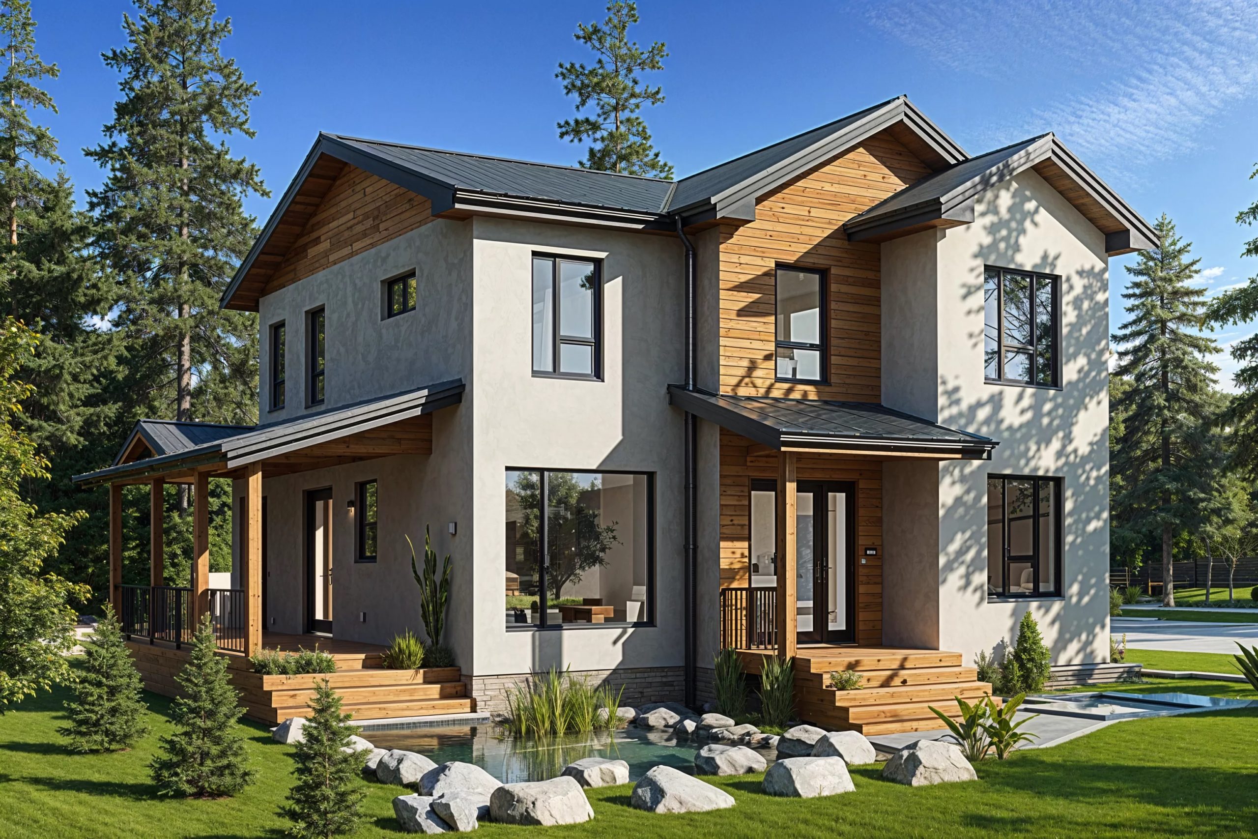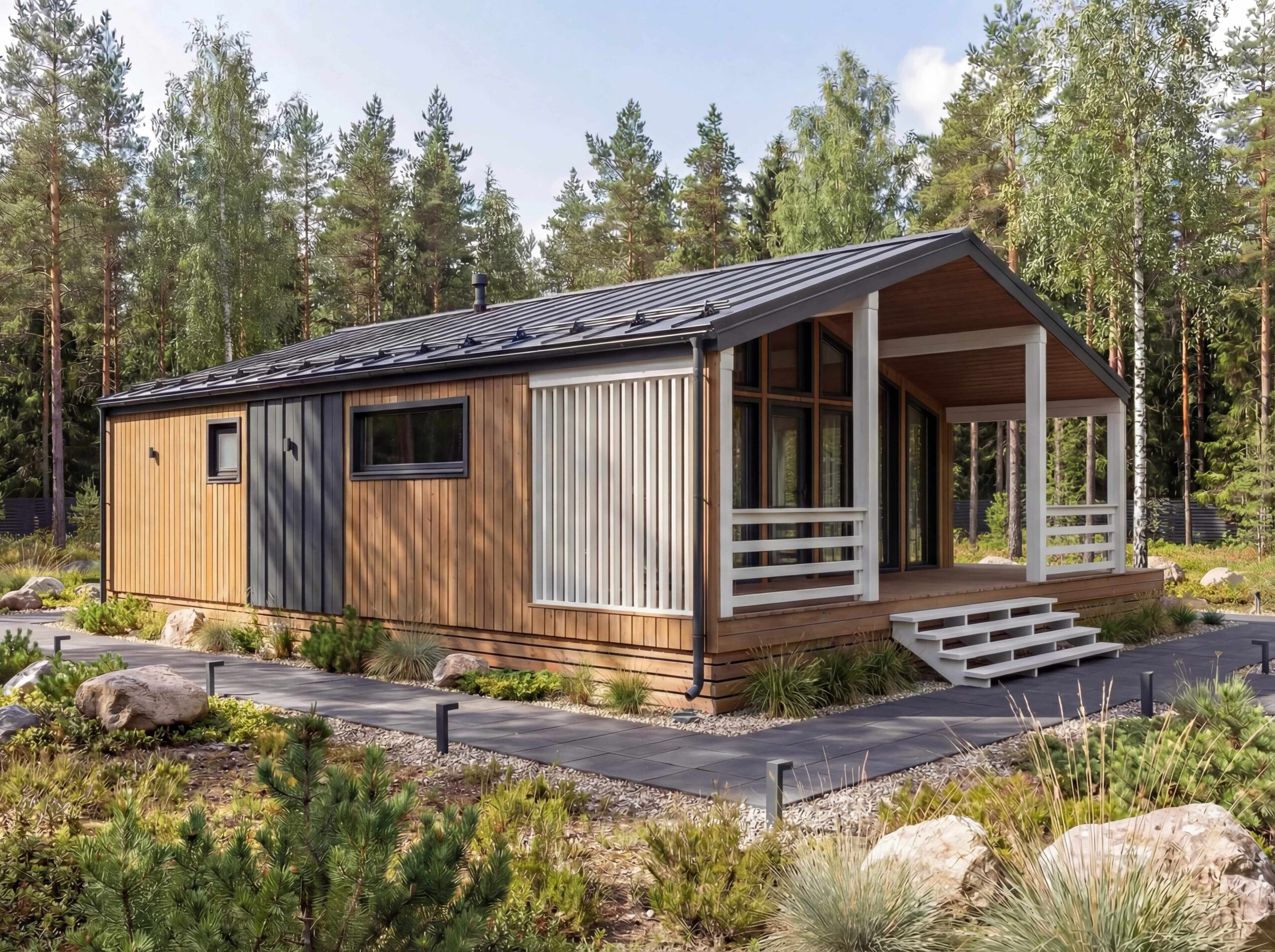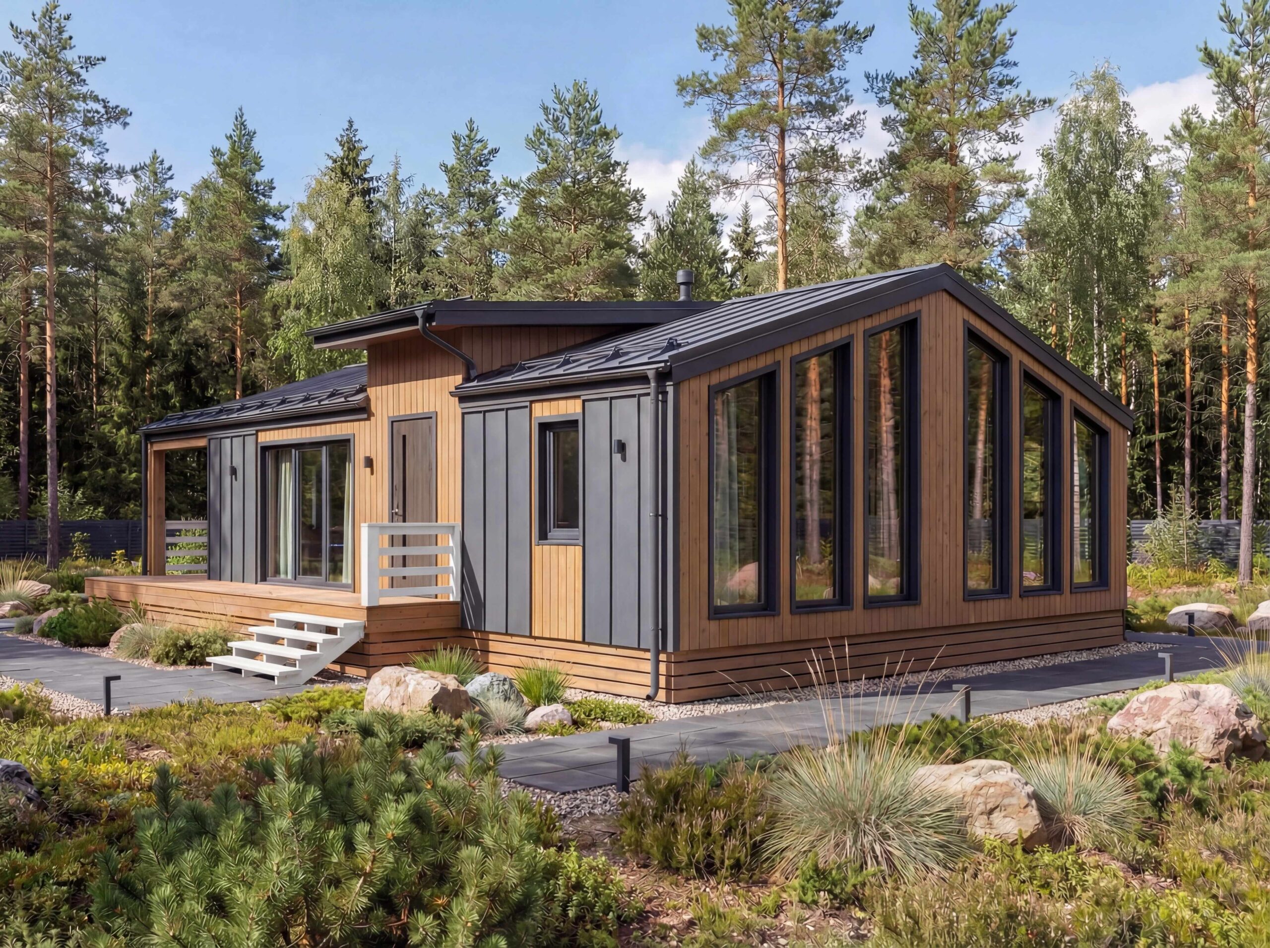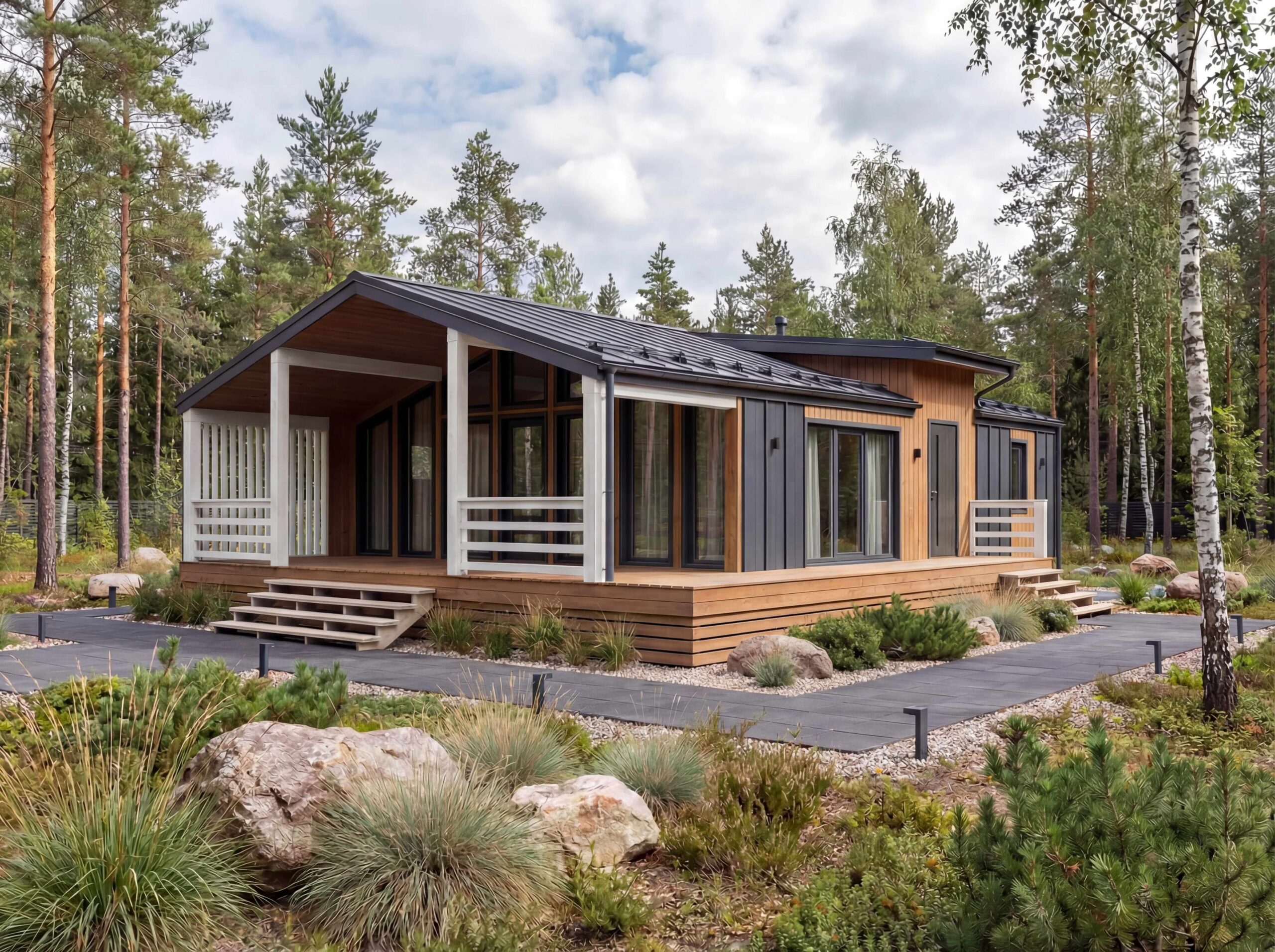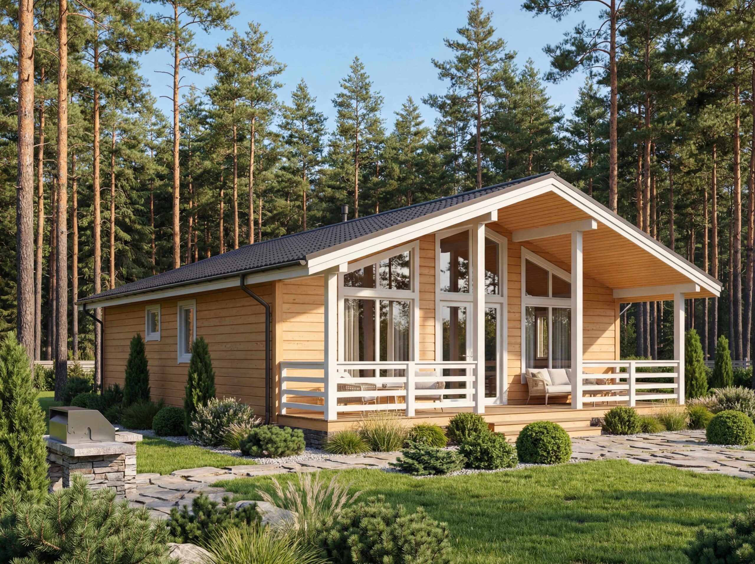 Каркасный дом XL31 — это стильный и современный проект площадью 146 м2 , идеально подходящий для комфортного проживания. В проекте предусмотрены просторная гостиная, несколько уютных спален и функциональные хозяйственные помещения. Благодаря каркасной технологии строительства дом возводится быстро и эффективно, а утепление стен и крыши позволяет поддерживать комфортную температуру в любое время года. Этот проект также позволяет гибко подходить к выбору отделки и обустройства, делая его подходящим для различных климатических условий.
