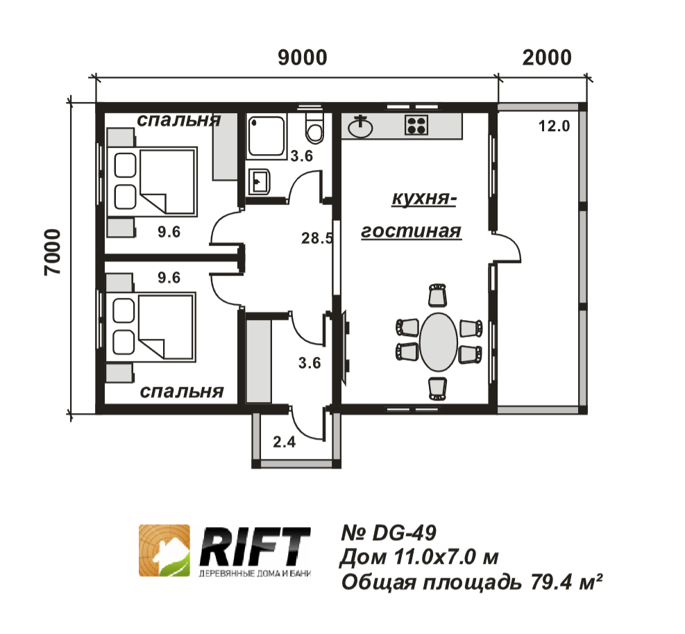 Пол | Черновой пол выполняется из доски 25 мм, чистовой пол выполняется из OSB-3 толщиной 18 мм | |