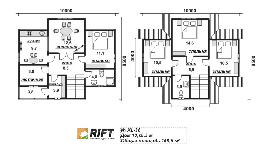 Каркасный дом XL38 от компании RIFT — это современное и функциональное решение для комфортного проживания. С общей площадью 148 м² и габаритами 10×8,5 м, этот дом идеально подходит для семей, ценящих простор и уют.