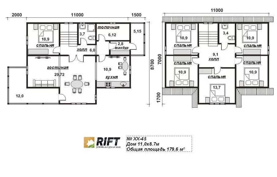 Пол | Черновой пол выполняется из доски 25 мм, чистовой пол выполняется из OSB-3 толщиной 18 мм | |