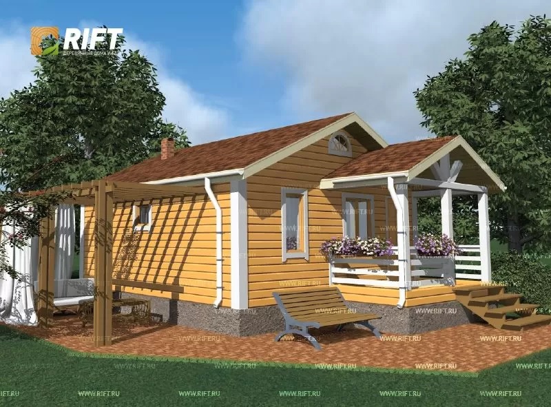 Проект «Семейная баня» представляет собой каркасную баню размером 6 на 7 метров, спроектированную специально для семейного отдыха. В этом проекте предусмотрено два помещения – парная и раздевалка. Парная оборудована дровяной печью с каменкой, что позволяет создавать максимально комфортные условия для принятия банной процедуры.