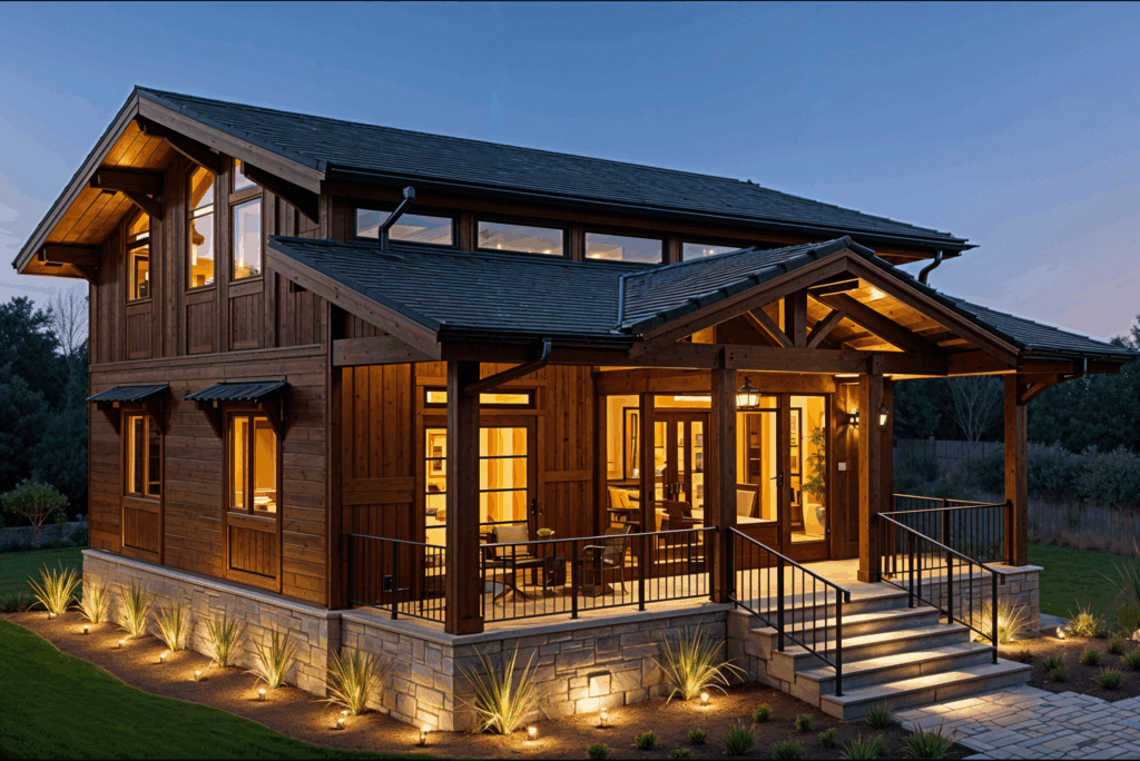 Если говорить о планировке и строительстве «человеческим языком», можно отметить, что в таких домах удобно сочетать открытые пространства с закрытыми комнатами, чтобы и детям было место для игр, и взрослым — для работы и отдыха. Можно создать террасу или балкон на втором этаже, чтобы наслаждаться видом на участок или природу вокруг, не выходя на улицу. При этом дом остаётся безопасным, экологичным и долговечным, ведь мы используем сертифицированную древесину и проверенные натуральные утеплители.